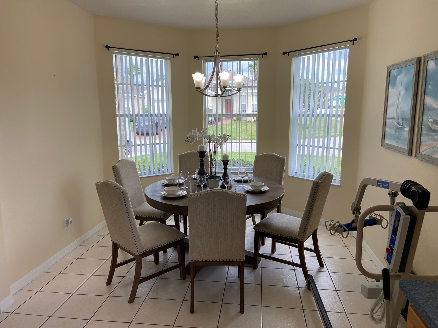 Dining Area - Large circular table, seating up to six, with space and mobility for wheelchairs.