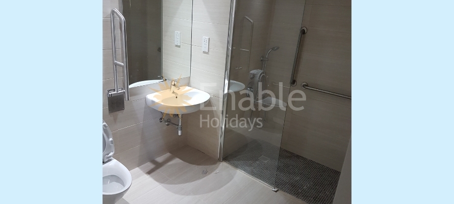 Access for wheelchair-users and guests with limited mobility is good. The complex is located on a flat area and there are ramps to enable easier access around indoor and exteral areas. All rooms are wheelchair accessible; and the disabled adaptations include grab rails, a roll-in shower and shower chair. An electrically operated profiling bed can also be arranged, and the pool features a ramp and Roman-style steps.