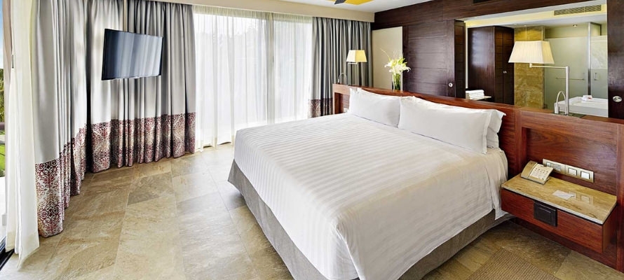 16 restaurants, four buffest bars, eight speciality restaurants, four snack bars/grill restaurants, two tennis courts, two paddle courts, mini-golf, basketball court, football field, gym, beach volleyball, table tennis, badminton, darts, water polo, bowling alley*, Surf Rider*, WiFi*, 24hr room service*, international phone calls*, Nintendo games*, 24hr medical services*, waiter pool service*, car rental* and kids' club for ages 4-12.