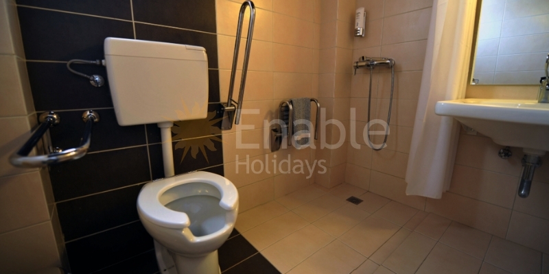 Rooms are located on the ground floor and have wall mounted shower chair as well as grab rails for both the toilet and shower. Book early for this hotel to avoid disappointment.