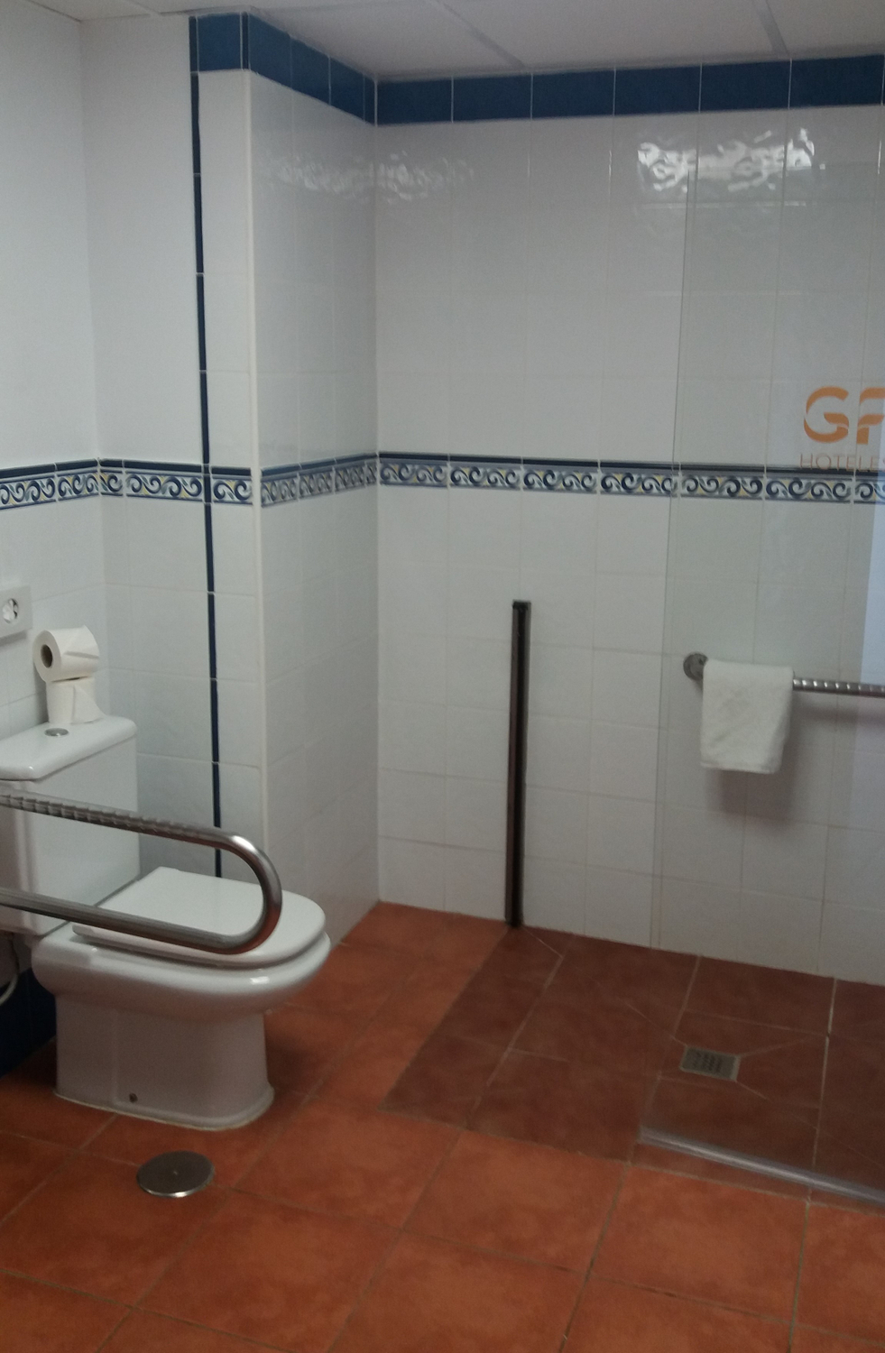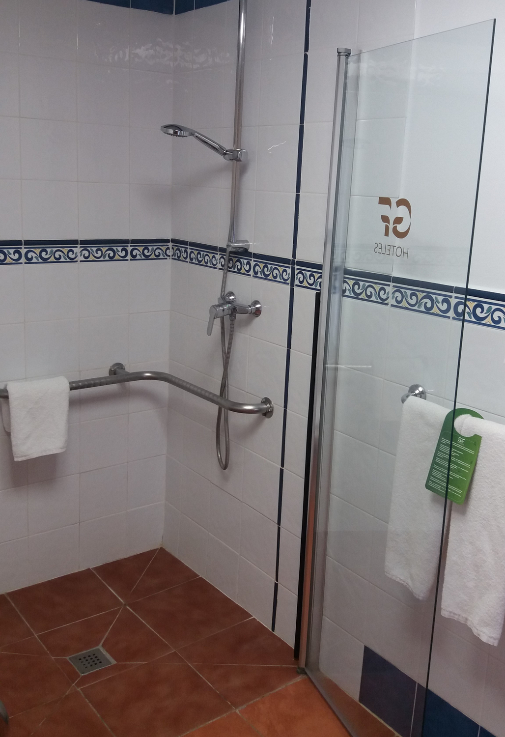 A lovely Canarian style property with plenty of facilities and adaptations. The adapted bathrooms are spacious and well equipped. The pool area has a gentle sloping end for access for disabled guests. Some of the cobbled streets and ramped areas can be difficult for manual wheelchairs and the property has a steep driveway leading to the flatter entrance so a mobility scooter is recommended, which we can arrange hire for.