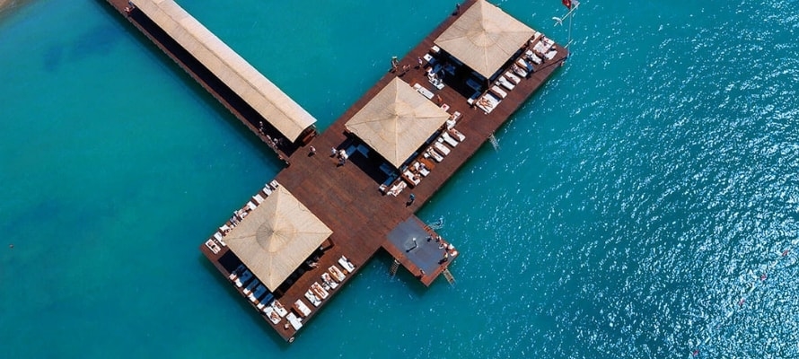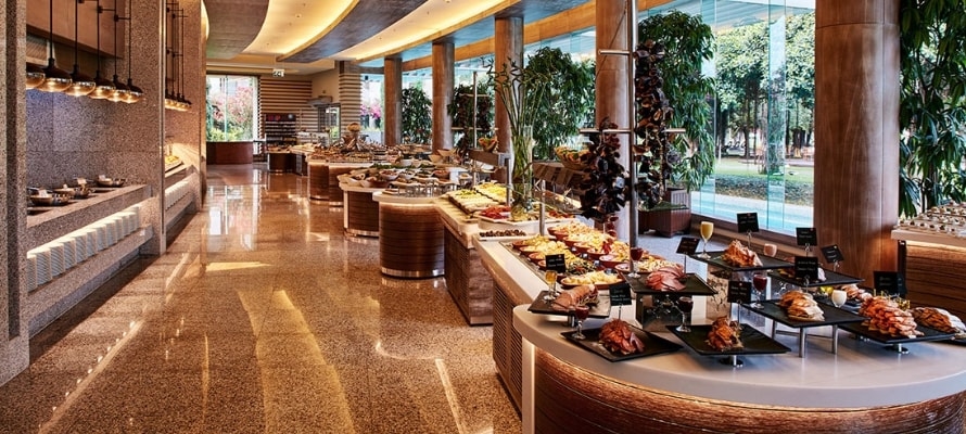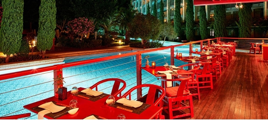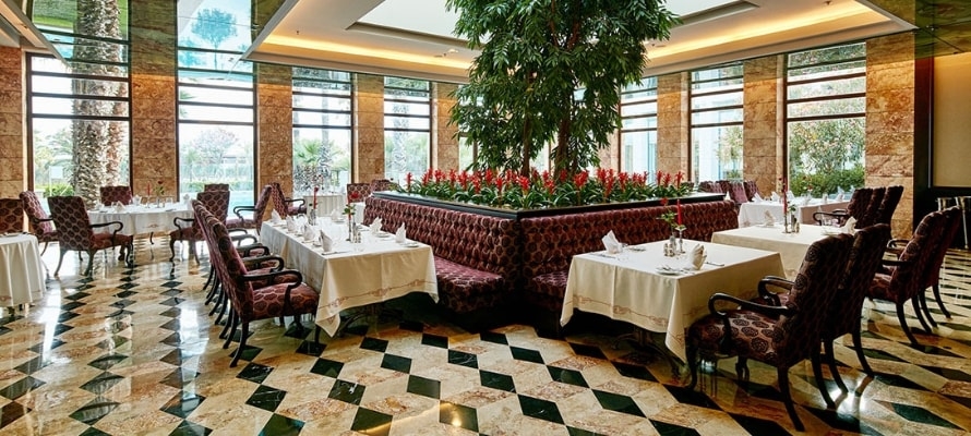 Wellness programs, game centre, indoor and outdoor pools, massages, facials, body treatments, salon treatments, Turkish bath, sauna and steam bath, body care, babysitting, Main restaurant, French restaurant, Sha Japanese cuisine, steakhouse, fish restaurant, Route 66 villa restaurant, À La Carte restaurant, Brasserie, lobby bar, beach bar, Dock's pier bar, Patisserie