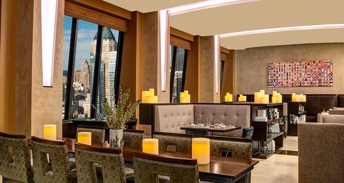 Built in 2000 and soaring 44 stories above Manhattan, this upscale hotel is located in the heart of Times Square on 42nd Street (between 7th and 8th Avenues) and is steps from Broadway theatres, nightlife, restaurants, and New York City's best shopping and entertainment. Hilton Times Square offers 478 oversized guest rooms with spectacular panoramic views plus amenities including Zagat-rated Restaurant Above, Pinnacle Bar, 500 sq. ft. of meeting space, a modern fitness centre and more.