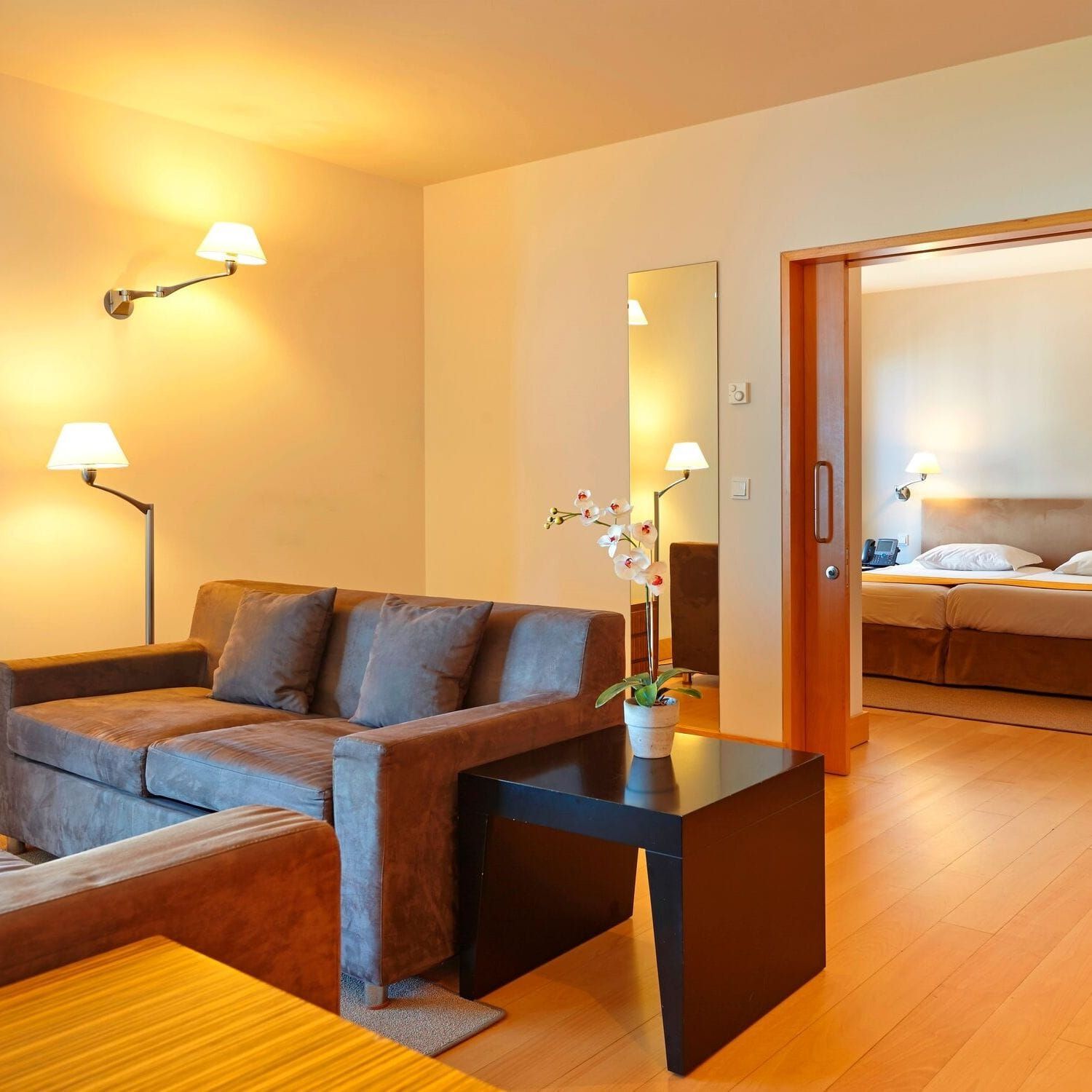 The adapted room for disabled guests is a good-sized suite with twin beds and a sofa bed and easily sleeps three people. It also features a kitchenette and basic cooking facilities.