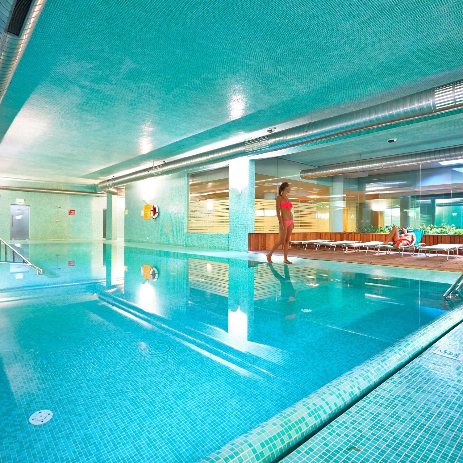 Elevators and ramps provide access around the hotel and both the indoor and outdoor pools are accessible via gently incling ramps with supportinve railing.