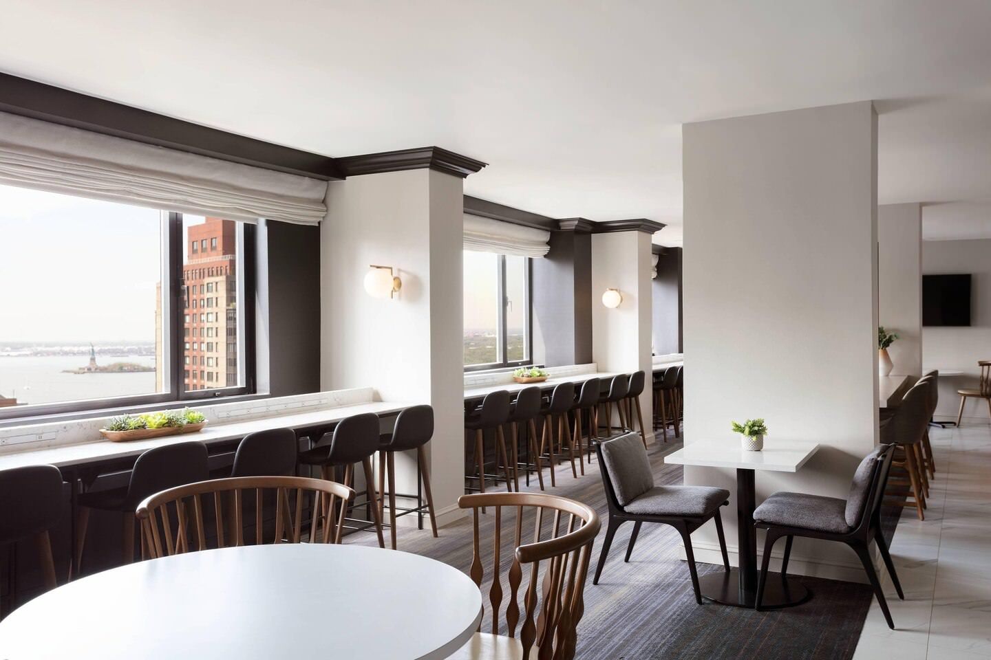 All public areas non-smoking, Barber, Beauty shop, Concierge Lounge Hours, Gift/newsstand, Coffee/tea in-room, Cash machine/ATM, Concierge desk, Foreign exchange, Housekeeping service daily, Mobility accessible rooms, Newspaper in lobby, Redesigned Marriott, Safe deposit boxes, front desk, Valet dry-cleaning, Health and Beauty Services, Coiffeur Salon and Esquires Of Wall St.