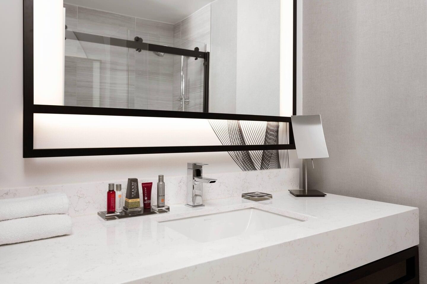 Guest Room Accessibility; Accessible guest rooms with 32” wide doorways, Accessible route from public entrance to accessible guest rooms, Alarm clock telephone ringers, Bathroom grab bars, bathtub grab bars, Bathtub seat, Deadbolt locks, lowered, Door night guards, lowered, Doors with lever handles, Electrical outlets, lowered, Hearing accessible rooms and/or kits, No transfer showers available, Roll-in shower, TV with close-captioning, Toilet seat at wheelchair height, Vanities, accessible and Viewports, lowered.