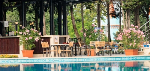 There is also a main buffet restaurant, pool bar, lobby bar, entertainment bar, beach bar and a disco club. An outdoor stage accommodating up to 350 people is also within the complex where various entertainment shows take place.