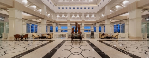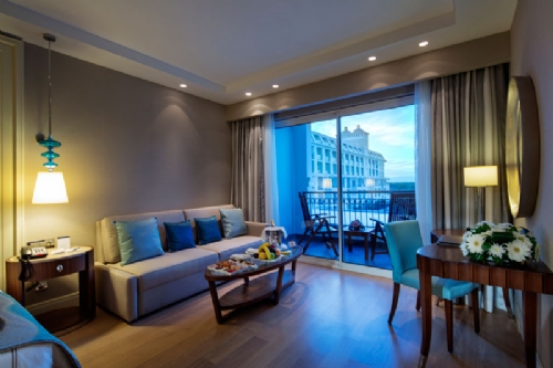 The Titanic Deluxe Golf Belek architecture blends with the sensationally green surroundings while the decor inside is an elegant contrast, with whites and turquoises combining to create an exceptionally soothing ambience.